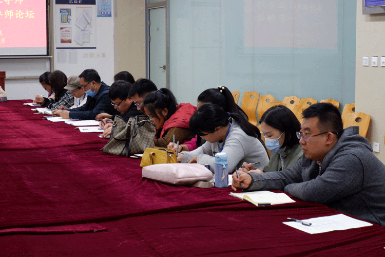 本次导师论坛围绕“本科班级导师如何指导特色班级建设”这一主题展开,共分为三个环节,第一环节,由副院长刘光晓宣读《关于开展特色班级评选工作的通知》,介绍了特色班级类型。第二个环节,各班级导师积极发言,张进老师表示将以特色班级类型为指导方向,引导学生制定学习目标,带领学生参与课题项目、技能大赛、论文写作,打造特色班级。第三个环节,副院长李清作总结发言,要求各位导师要结合自身情况,把学生指导与特色班级建设结合起来,有计划的开展工作并严格按计划实施。