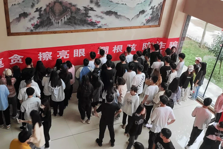 正值开学季,电信网络诈骗进入高发期,上好防骗第一课尤为重要。同学们踊跃参与到防电信网络诈骗宣传活动中来,纷纷在横幅上签名。