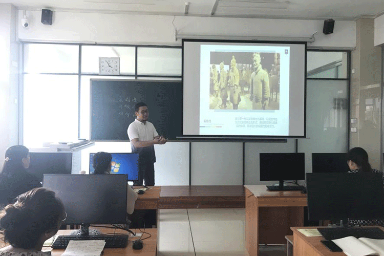 刘吾久老师在讲授课程内容以外,还简单回顾了自己入职以来的心路变化历程:从刚刚毕业到入职华宇,从学生到教师角色的转变等等,刘老师对所授的《展示设计》课程进行了重新系统梳理,对每个章节的要点、难点有了更清晰的掌握,将参与竞赛的过程上升为检查自身教学水平、改进教学方法的高度。刘老师讲课重难点突出,逻辑严密,节奏把控较好,道具略简单,板书需多加练习。