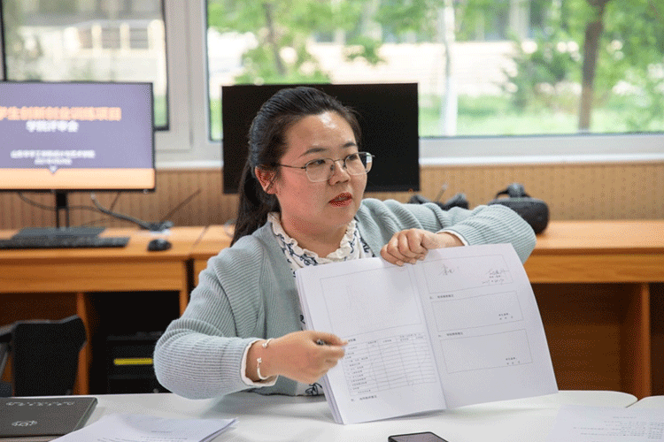 随后,韩宁老师讲述评审流程,并将学生创新创业项目书分发给各个教研室创业导师及骨干教师进行审阅。各位创业导师从项目内容、项目人员分工、格式要求以及项目资金预算等内容进行分析、研讨,并逐一对每份项目申报书出现的争议性问题进行集中讨论。