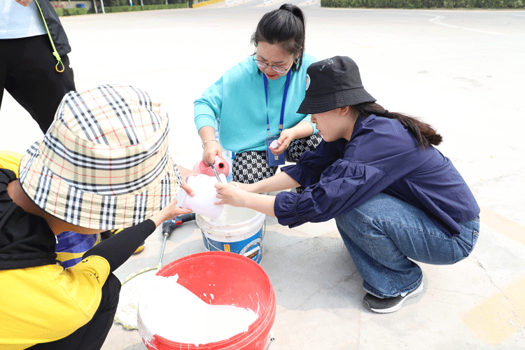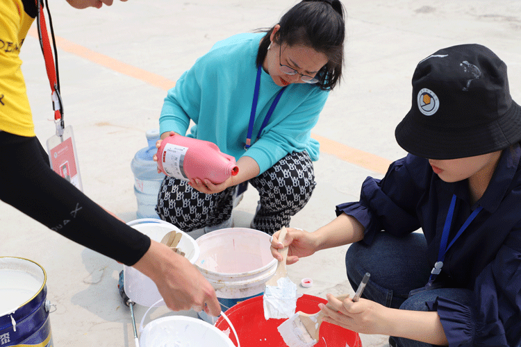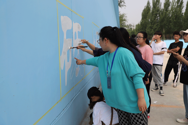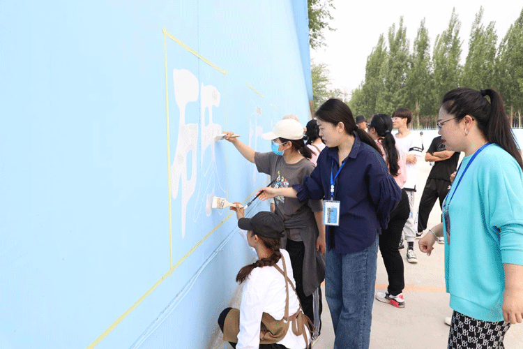 为全面推进课堂教学改革,强化实践教学质量,深化课程思政育人工作,beat365唯一官网在积极提高基层教学组织的管理能力的基础上,充分调动各专业专任教师的教学改革积极性,引导教师结合实践项目开展形式多样的教学改革。在华晨驾校训练场周边墙面装饰项目启动后,《构成设计实训》课程组积极研讨课程内容、拓展教学思维,将集中实践课程搬到项目现场,充分发挥教学仪器设备的作用,完成了墙面装饰项目的第三项任务,至此,华晨驾校训练场周边墙面装饰项目圆满完成。