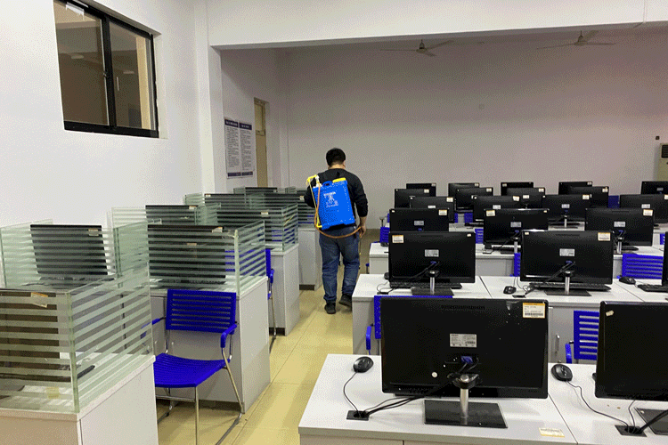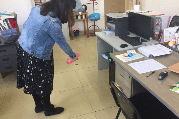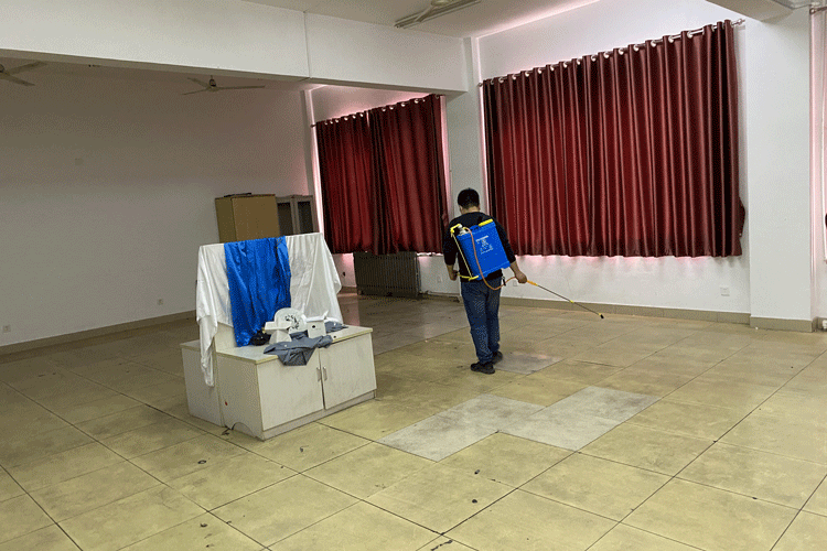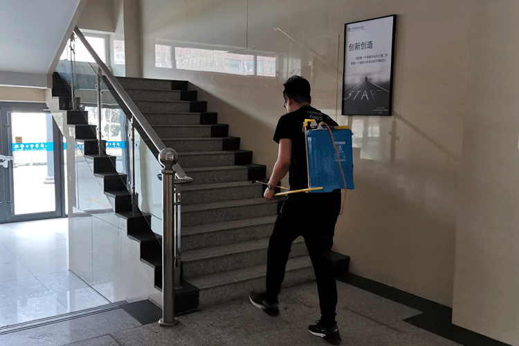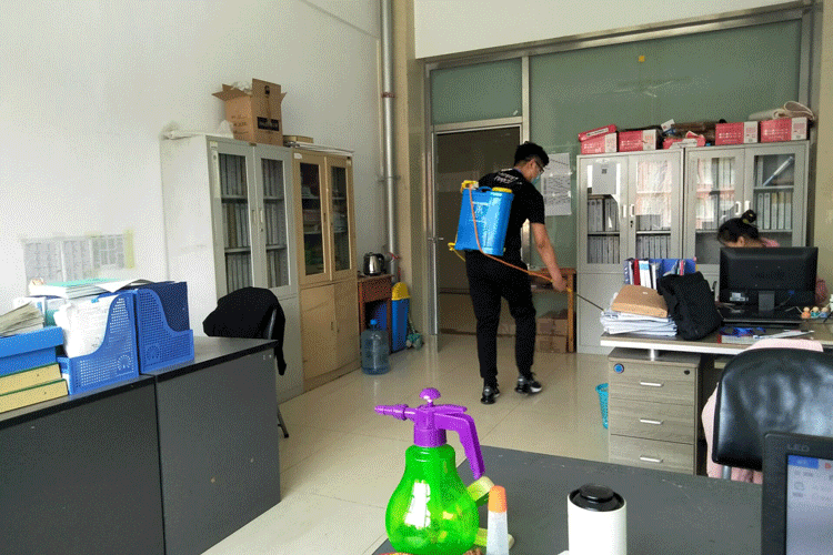 3月23日,全院在校上班教职工对学院各区域进行了全面的清洁卫生和消毒,消毒场所涵盖了教室、学生实验室、教师办公室、楼梯等,采取喷洒与擦拭相结合的方式,特别重视对窗台、门窗把手、电话机等高频接触的物品进行消毒。消毒过程做到了认真、仔细、不留死角,确保消毒彻底。同时对各室卫生进行了清理和通风,给师生提供了安全、卫生的工作和学习环境。