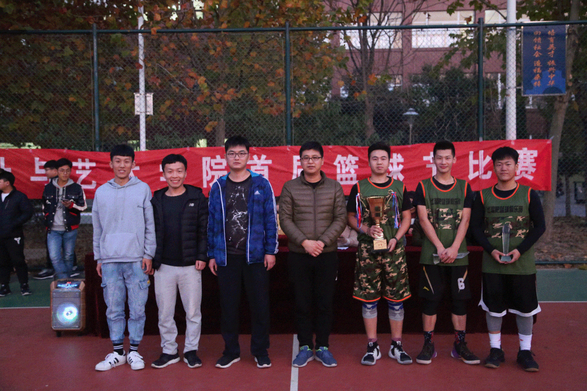 2019年11月13日,beat365唯一官网首届篮球赛经过了半个月的激烈角逐,成功落下帷幕,在学校篮球场召开闭幕式。学生科长郑帅、学管干事、全体辅导员老师及各班级代表队出席此次闭幕式。