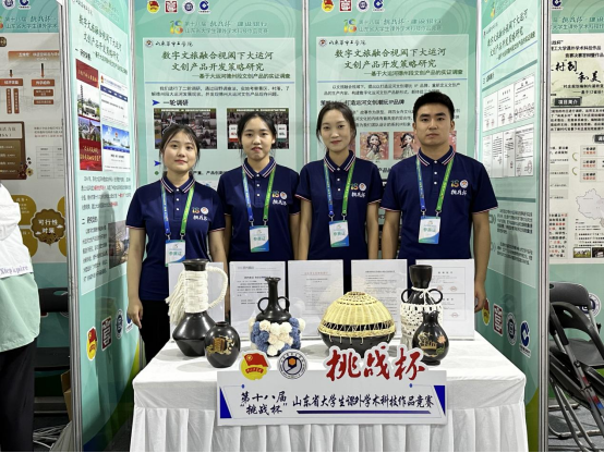 竞赛启动以来,学校高度重视,精心组织,广泛宣传发动,组建了竞赛宣讲团,收到学生参赛作品708项。通过校内评审,评选出重点培育项目,成立了“挑战杯”训练营,邀请校内外专家进行“一对一”辅导和赛前强化。经省赛决赛评审,我校参赛作品《数字文旅融合视阈下大运河文创产品开发策略研究——基于大运河德州段文创产品现状的实证调查》荣获一等奖;《查“漏”专家——全自动塑料瓶测漏机》《别出心“裁”——艺术造型草皮裁剪机》《“智”采大师——基于Hough算法的柔性智能番茄采摘机》等三个作品荣获三等奖。