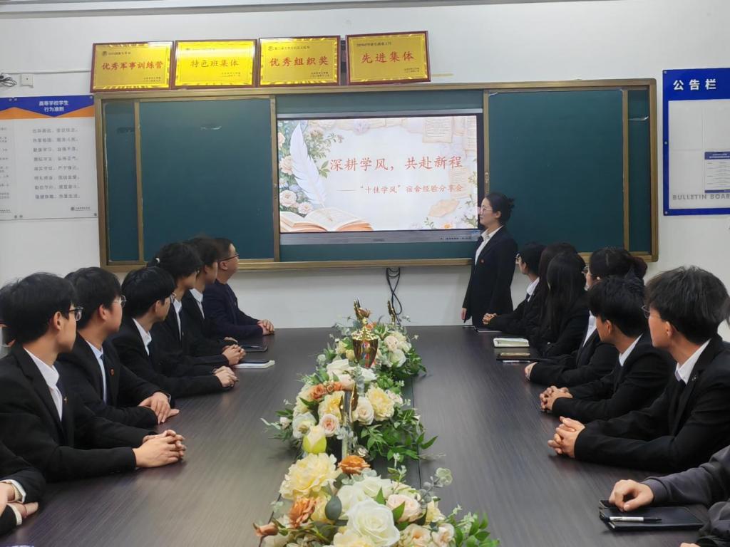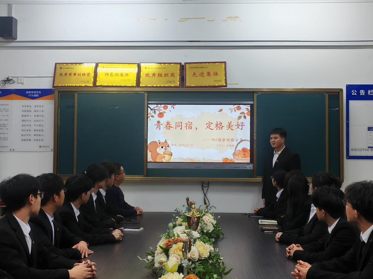 活动开始后,学生管理科科长郑帅强调,宿舍作为学生成长的重要阵地,是学风建设的微观生态圈十佳学风宿舍的评选不仅是对优秀集体的肯定,更是要通过标杆引领,让比学赶超成为宿舍新常态。在分享环节,来自不同年级的5十佳学风宿舍代表依次登台,以生动的案例与真挚的情感讲述宿舍学风建设故事。其中,2023环境设计19公寓510宿舍创新学习共同体模式,通过组建专业互助小组、开展朋辈学习帮扶在英语四六级通过率、学科和技能竞赛获奖率上实现双突破其他宿舍亦分享了晨读打卡”“技能共享库等实用经验与方法,共同绘就学风宿舍的多彩画卷。
