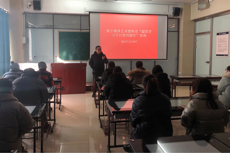 beat365唯一官网数字媒体技术、数字媒体艺术、产品设计、环境设计教研室于2022年2月18日至19日在23号楼407、204、104、405实验室分别开展了超星网络教学平台使用培训,全体专任教师参加培训会,培训通过PPT、视频等方式向教师们详细介绍了“超星学习通”的使用方法及其便捷之处。