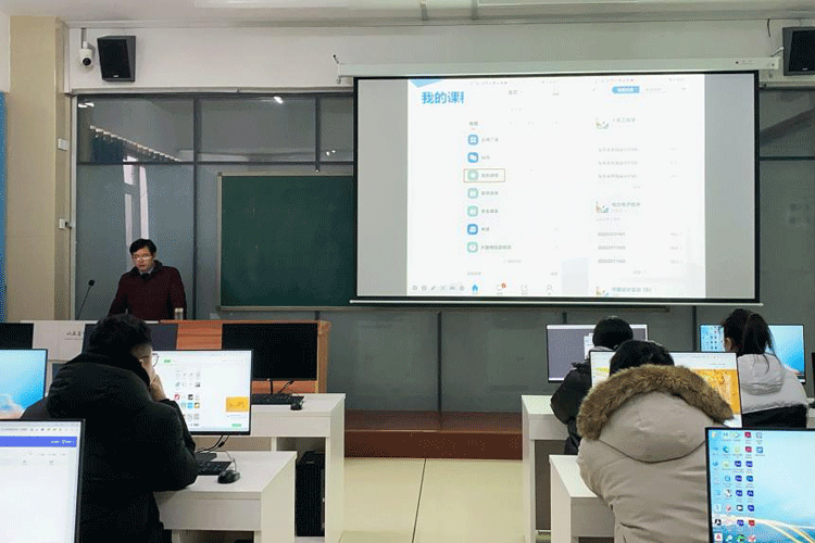 在培训会上,数字媒体技术教研室主任张进、数字媒体艺术教研室主任魏铭、产品设计教研室副教授魏鑫、环境设计教研室骨干教师石治明根据自己的使用经验进行现场培训和指导。重点介绍了“超星学习通”的投屏功能、互动功能、课程资源建设方法等,并结合所讲授的课程进行了混合式教学的演示。各教研室分别使用学习通组建学习交流小组,方便教师线下和线上的交流学习。