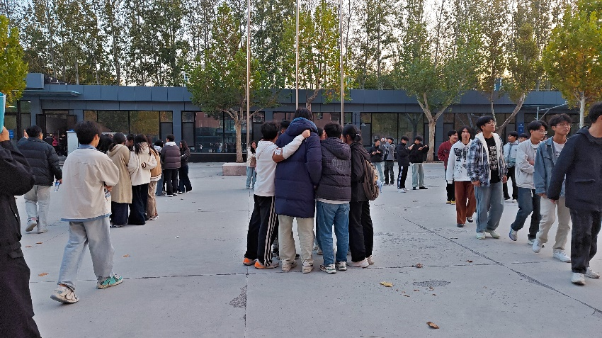 在金黄与火红交织的校园中,学生会以青春的热情迎来这场别具意义的素质拓展。活动前,各部门积极筹备,从节目排练到道具准备均有条不紊。活动现场,学生会举行了桃花朵朵开,开火车,十人九足,画画传声筒等活动,各部门成员协同发力,配合从生疏到默契,沟通更高效顺畅。胆小者在挑战中突破恐惧、勇敢一跃;内向者积极献策、崭露头角,潜能被深度挖掘。大家并肩作战、相互帮扶,使新成员融入集体,“老”成员友谊加固,整个操场都洋溢着青春的活力。