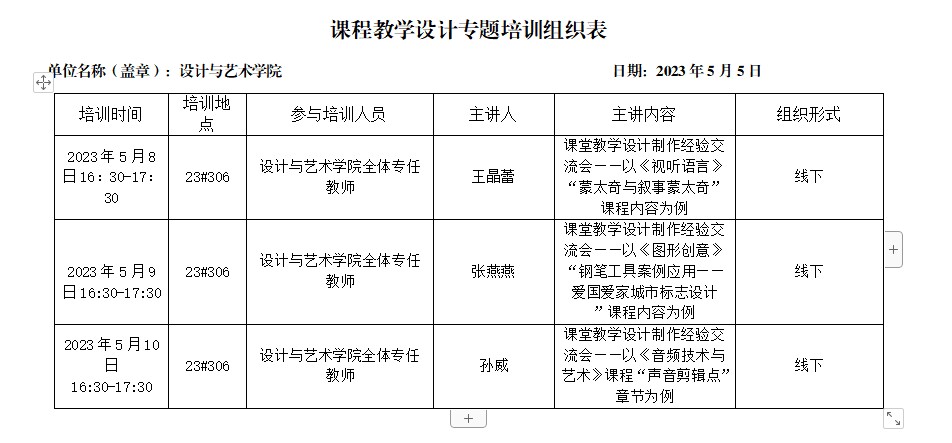 根据《beat365唯一官网关于进一步深化课堂教学改革工作的实施方案》要求,近期学校将启动优秀课程教学设计评选工作。 为进一步提高教学设计质量,beat365官网将于5月8日-10日开展课程教学设计专题培训,现将有关事项通知如下: