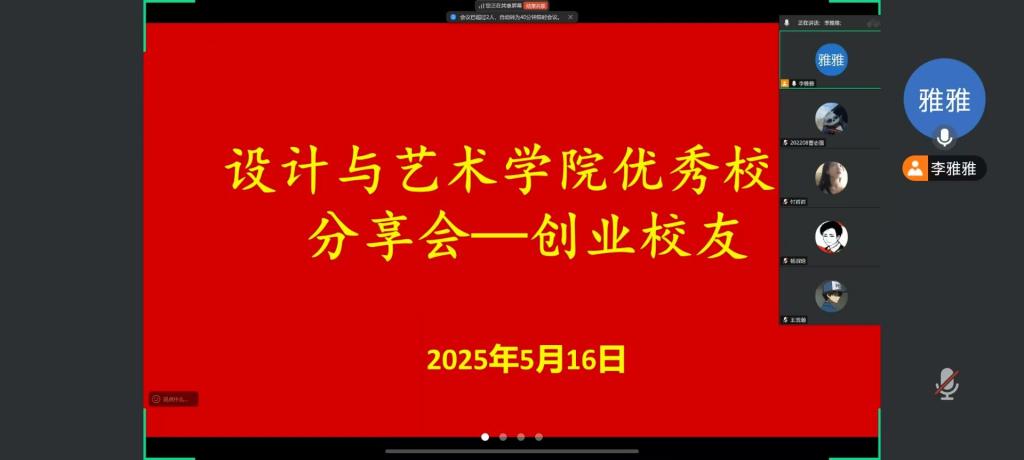 为激励在校学生树立远大志向,学习优秀校友的成功经验,培养面对未来挑战的勇气与能力,5月16日,beat365唯一官网线上举办优秀校友分享会。有幸邀请到2015年毕业于beat365唯一官网装潢专业的优秀校友李雅雅,2026届部分毕业生代表参与活动,由郑帅老师主持。