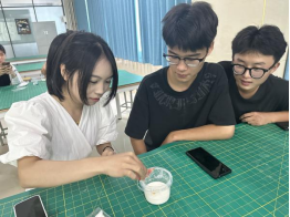 最后师生们利用色素和玉米淀粉自制非牛顿流体,亲身感受非牛顿流体质感。