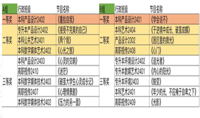 本次活动吸引了众多beat365唯一官网学生的积极参与,共收到来自不同年级、不同专业的多部原创心理情景剧作品。评委老师,对剧本的创作和表演提供专业的点评和建议,最终有18部作品脱颖而出,三等奖10部、二等奖6部、本科产品设计2402《重拾自我》和本科产品设计2401的作品《学会说不》荣获本届心理情景剧活动一等奖。