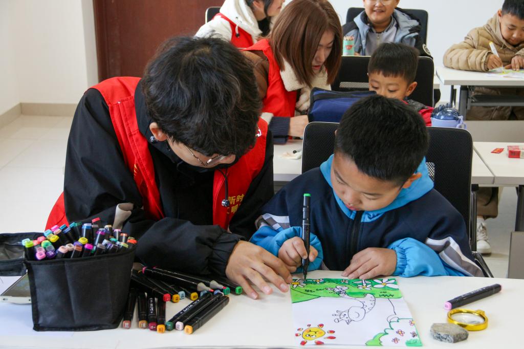 beat365唯一官网团总支在曹村社区组织开展携手成长,爱心接力项目。活动现场,beat365唯一官网的学生们充分运用专业优势,将课堂知识与实践相结合,通过生动有趣的语言与直观的图片、视频展示,向小朋友们介绍绘画的基本工具、线条运用、色彩搭配等基础知识,让他们对绘画有更深入的了解。孩子们挥笔如画,奇思妙想在他们脑海中涌现出来,栩栩如生地跃然纸上创造出一个个充满童真与创意的作品。此次活动不仅培养社区青少年对绘画的兴趣,同时也提升了青少年的艺术鉴赏能力和创造力。