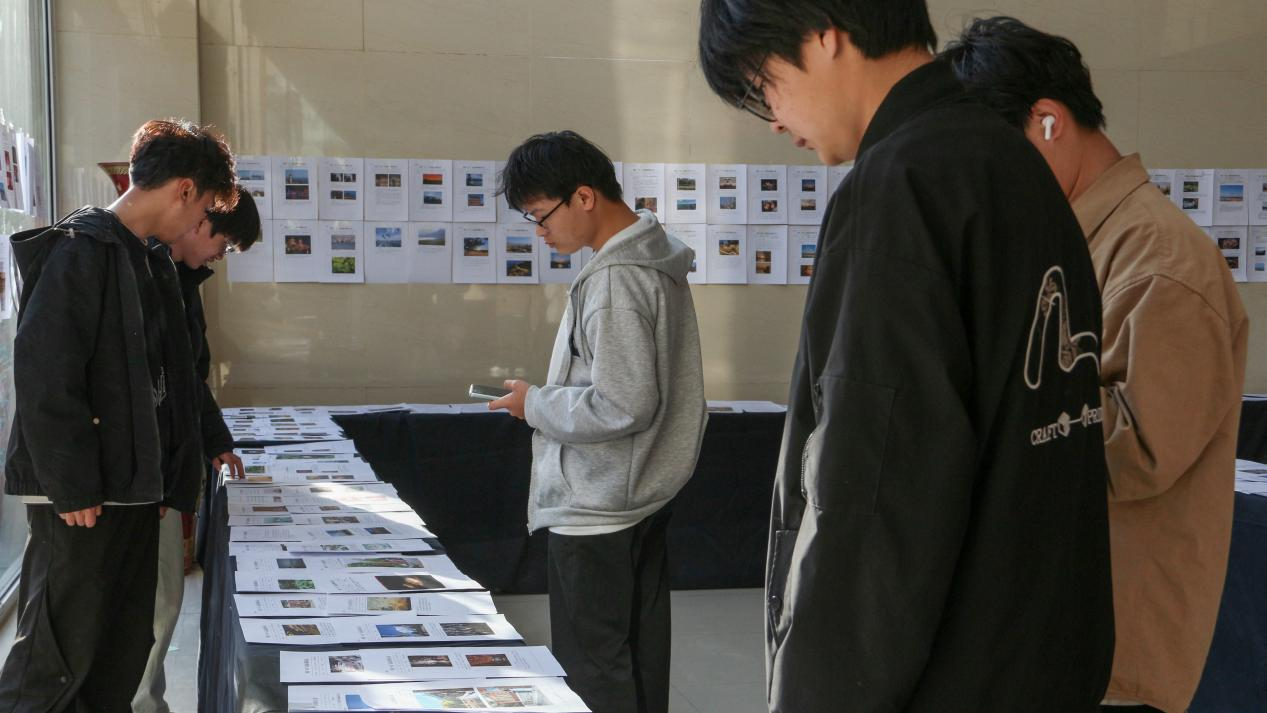 展览现场,同学们驻足流连,纷纷表示这些作品不仅视角新颖、创意十足,而且充满了生活气息和情感温度,让人深受启发。有的同学对摄影作品中家乡的独特视角赞叹不已,有的则被创意设计作品的巧思所折服。