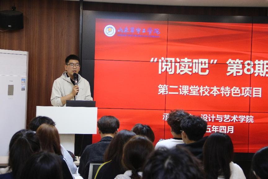 为持续营造书香校园氛围,丰富学生的精神世界,2025年4月21日晚19:00—21:00,校本特色项目“阅读吧”第八期活动在社团中心E馆如期举行。本次活动以“最美四‘阅’天,书香以致远”为主题,由2024级本科环境设计专业辅导员程治文老师带领学生共同参与,通过经典文学作品的分享与交流,感受阅读的力量与美好。