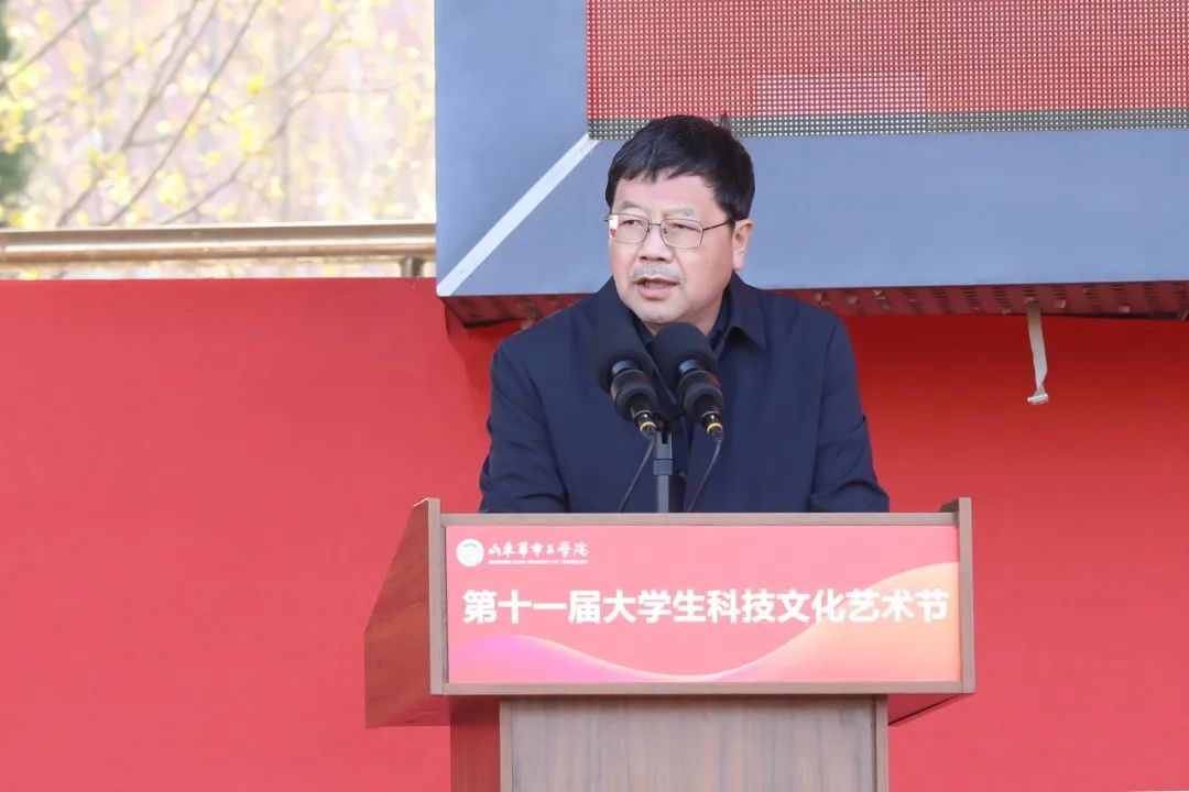 3月31日下午,我校第十一届大学生科技文化艺术节开幕式在体育场举行。学校党委副书记、副校长高挺进,副校长侯建昌,学院院长王平、李锋、李海龙出席了开幕式。相关职能部门、各教学单位主要负责人,全体学工人员、2024级学业导师以及学生代表参加了开幕式。