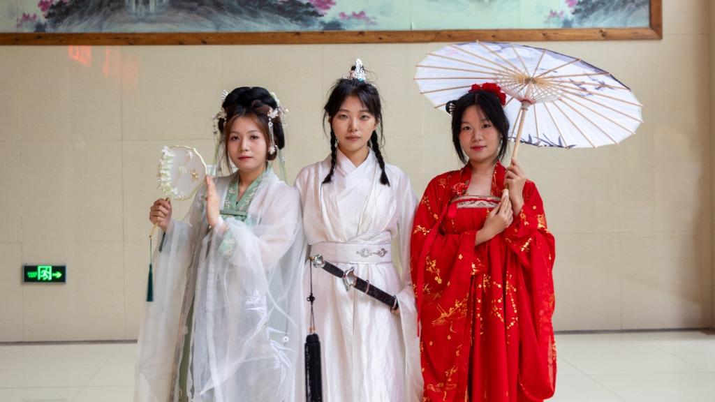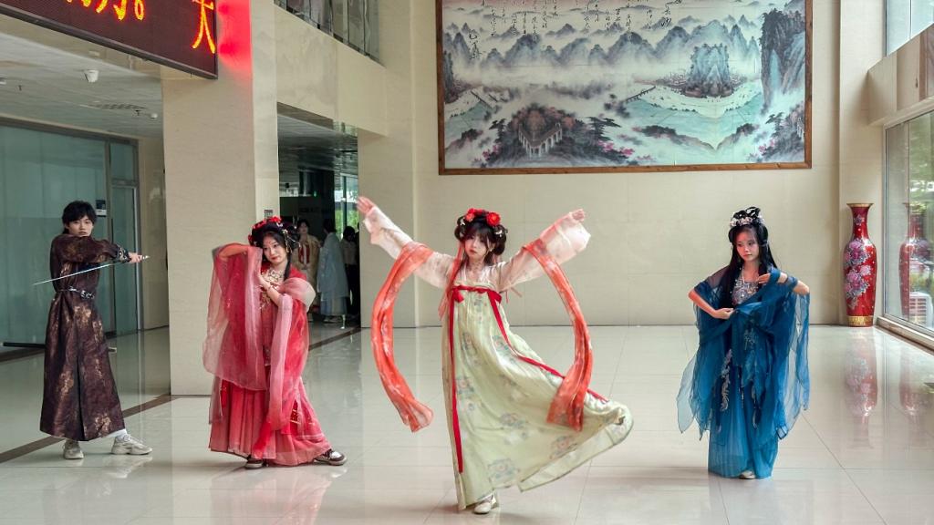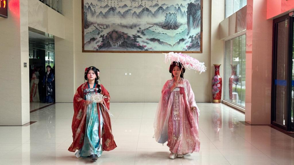 活动举办得精彩纷呈。比赛现场,学生们精神饱满,创意无限。自由组队的选手们围绕唐、宋、元、明、清五朝服装精心编排,模拟各类古代场景。古风走秀环节,同学们身着华丽汉服,举手投足间尽显古韵;情景剧表演生动演绎历史故事,情感真挚;古典舞蹈与诗词朗诵相得益彰,将现场氛围一次次推向高潮。现场道具精美,折扇、团扇轻摇,头饰精致典雅,让人身临其境。