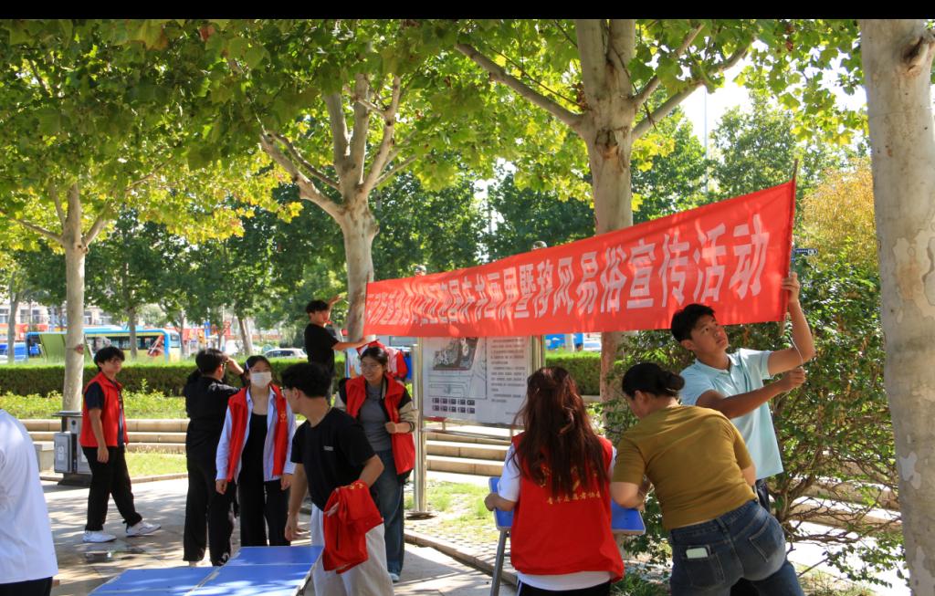 在国庆佳节即将到来之际,为营造浓厚的节日氛围,同时弘扬移风易俗的文明新风,2025年9月20日,beat365唯一官网团总支组织20余名志愿者同学们在运河街道盐店口社区开展了“笔墨绘华诞,集市暖邻里,慈善传大爱,新风润家园”的宣传活动。