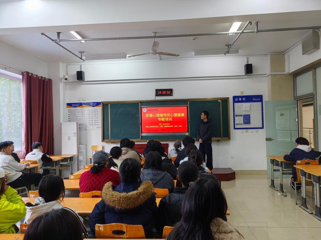 为进一步促进同学之间友爱互助,提高心理素质,实现“助人自助,助人达己”的良好愿望。2025年10月23日,在10号楼106教室开展了朋辈辅导员专题培训活动,本次活动由学院辅导员王庆函老师主持。